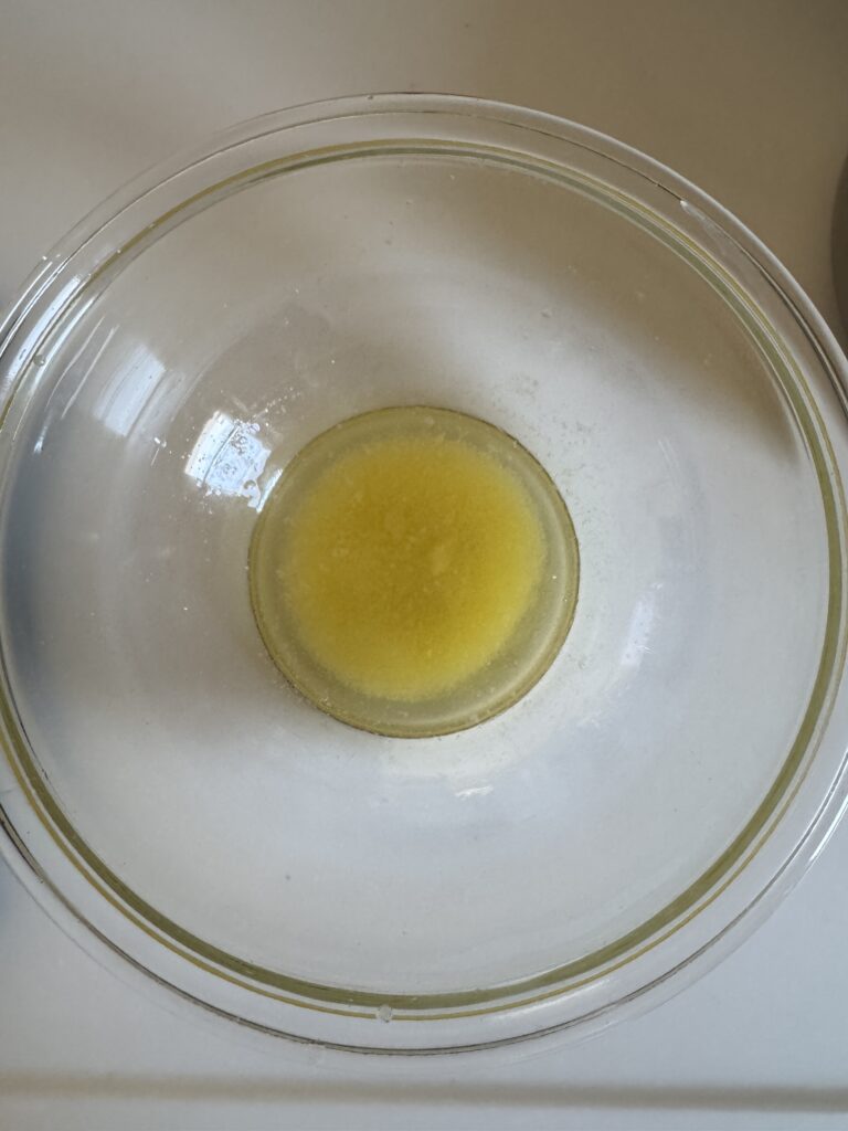 • 耐熱ボウルにバターを入れ、ラップをせずに電子レンジで30秒ほど加熱する